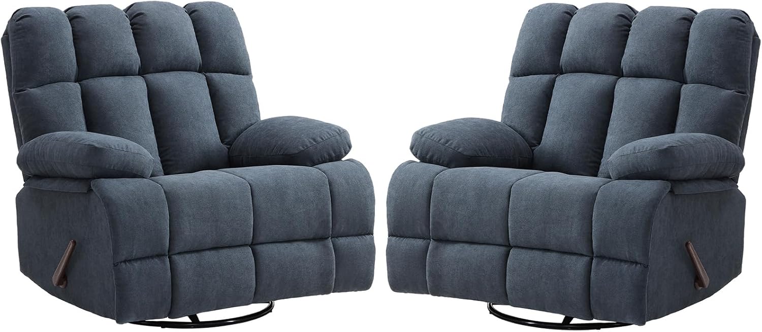 2PCS Oversized Recliner Chair, 360° Swivel Rocker Recliner for Big Man, Extra Wide Manual Recliner, Overstuffed Soft Rocking Sofa Chair for Living Room(Grey)