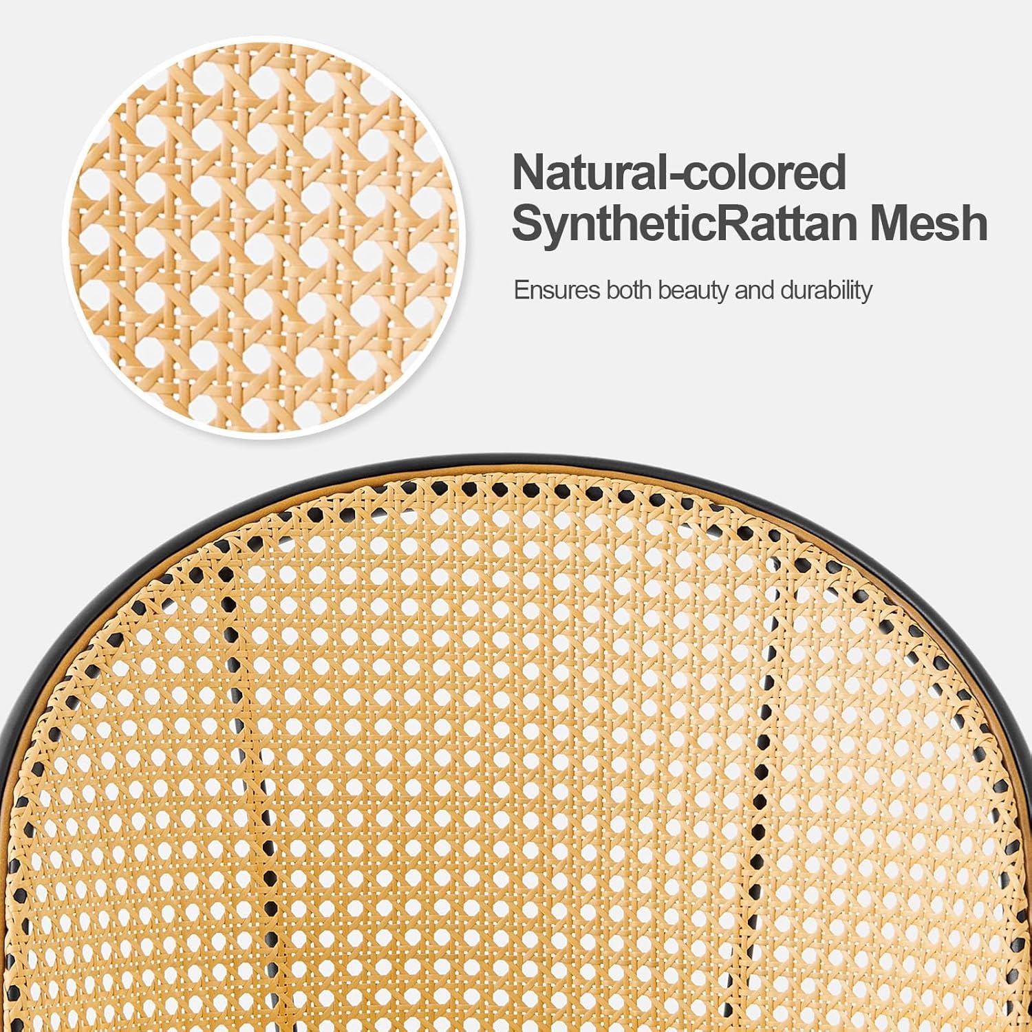 - 【Modern Mid-Century Style】: These dining chairs boast the sleek and timeless design of mid-century aesthetics. Powered-coated black metal legs provide a touch of contemporary elegance, while the exquisitely crafted rattan hollow back provides a delicate accent of natural beauty. This design evokes classic charm and creates an idyllic atmosphere.