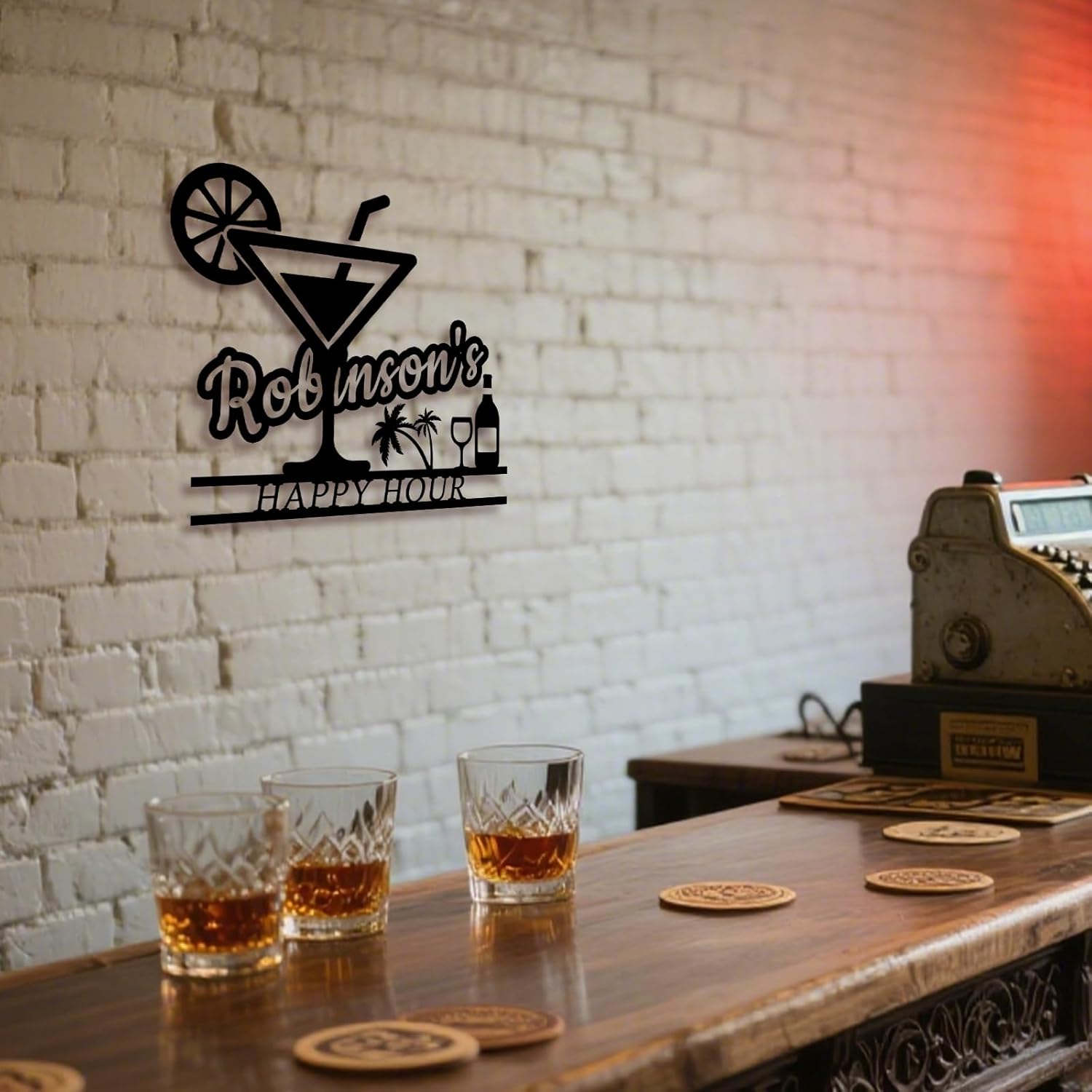 - Customizable Happy Hour Bar Sign: Personalize with names, dates, or witty cocktail quotes (e.g., "It’s 5 O’Clock Somewhere!") on premium metal. Laser-cut designs feature wine glasses, martini motifs, or vintage cocktail shakers—perfect for transforming home bars, kitchens, or patios into lively entertainment hubs. Proudly Made in USA: Crafted locally for rapid turnaround! Ensuring timely gifts or surprises. Quality meets speed