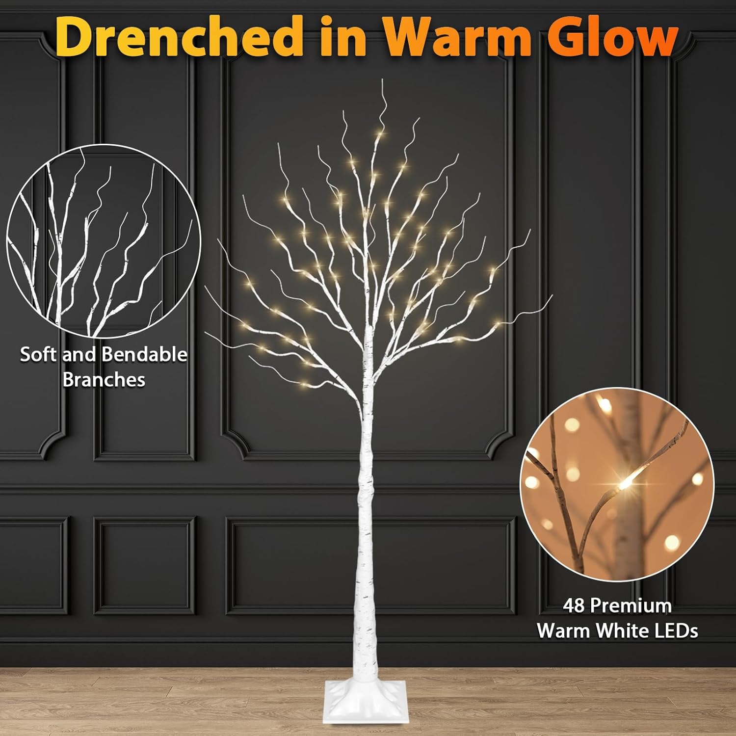 - Perfect Size for Tabletop & Corner Displays✅This beautifully crafted 4ft LED birch tree stands at an ideal height for decorating tabletops, shelves, cozy corners, or entranceways. Its versatile size fits seamlessly in both intimate indoor settings and elegant outdoor displays without overwhelming the space.