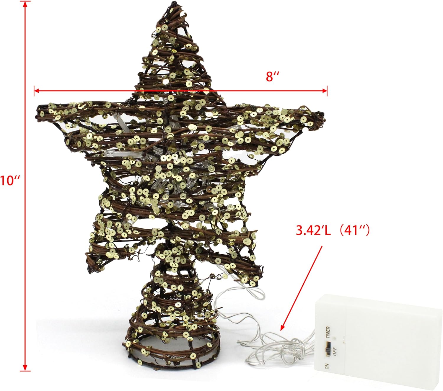 - IDEAL SIZE: Measures 8 x 10 inches, making it perfectly proportioned for most standard and artificial Christmas trees. the wire is 3.42'L (41"), 3D star, solid batteries box with flexible switch, New Upgrades design
