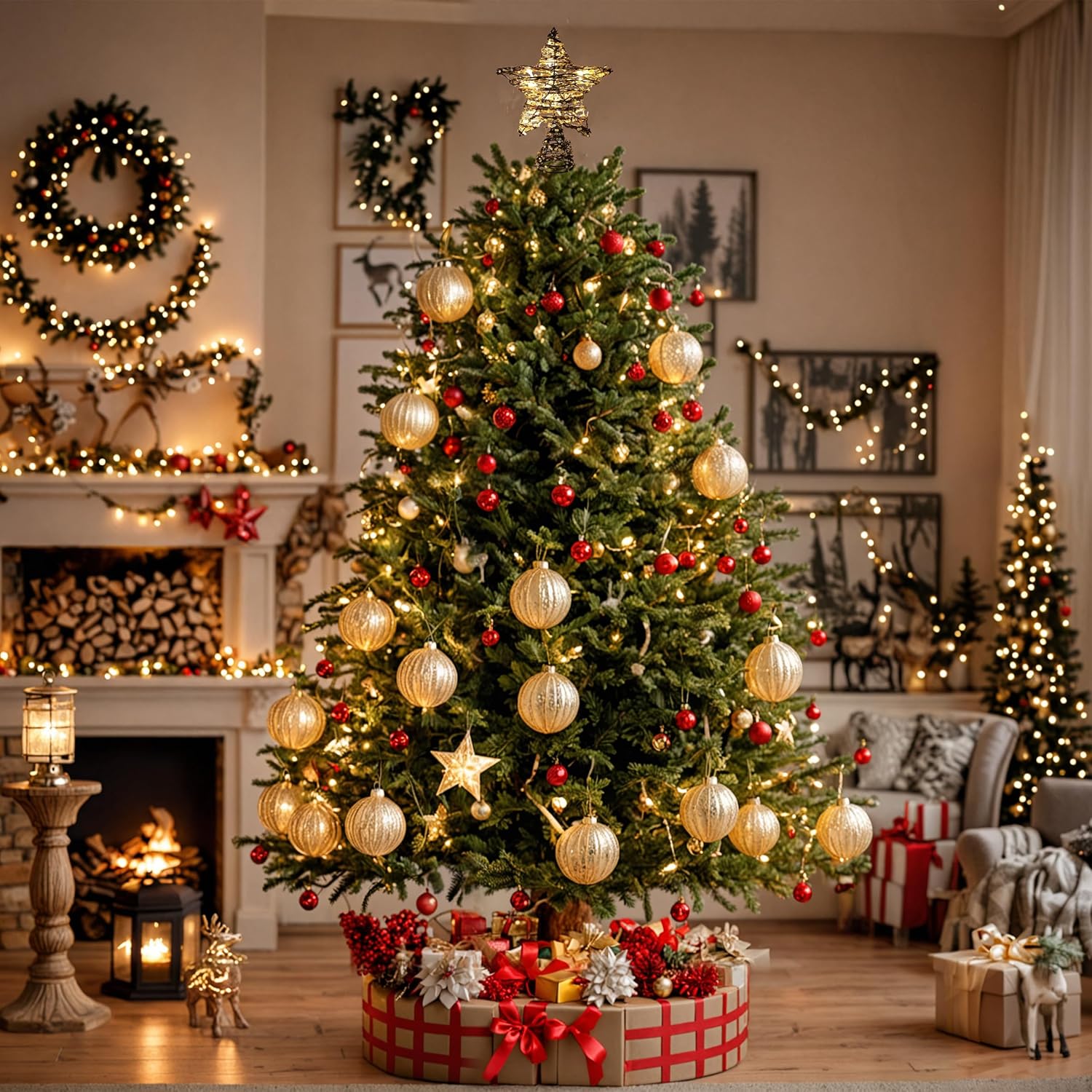 - RUSTIC DESIGN: Handcrafted tree topper made from natural rattan branches arranged in a stunning star pattern, perfect for farmhouse-style Christmas decor