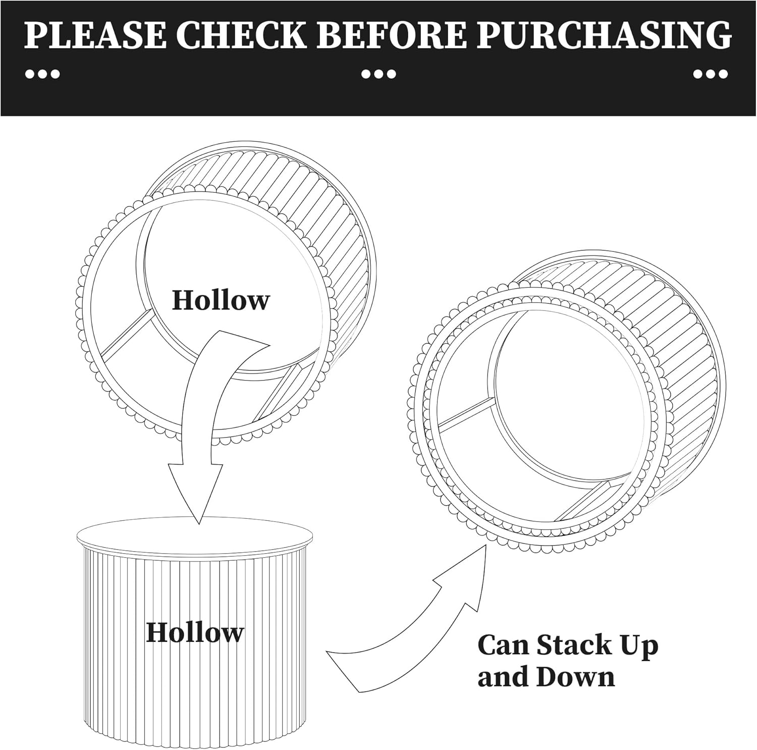- Space-Saving Nesting Coffee Table: Perfect for small spaces! The set includes two sizes: - one Coffee table (Φ 18.9 x H 14.96 inch) and one side table (Ø 14.96 x H 11.81 inch). Stack them effortlessly using the hollow base for a compact footprint, or separate for multi-level display. An ideal nesting table solution for apartments, dorms, or optimizing living rooms.