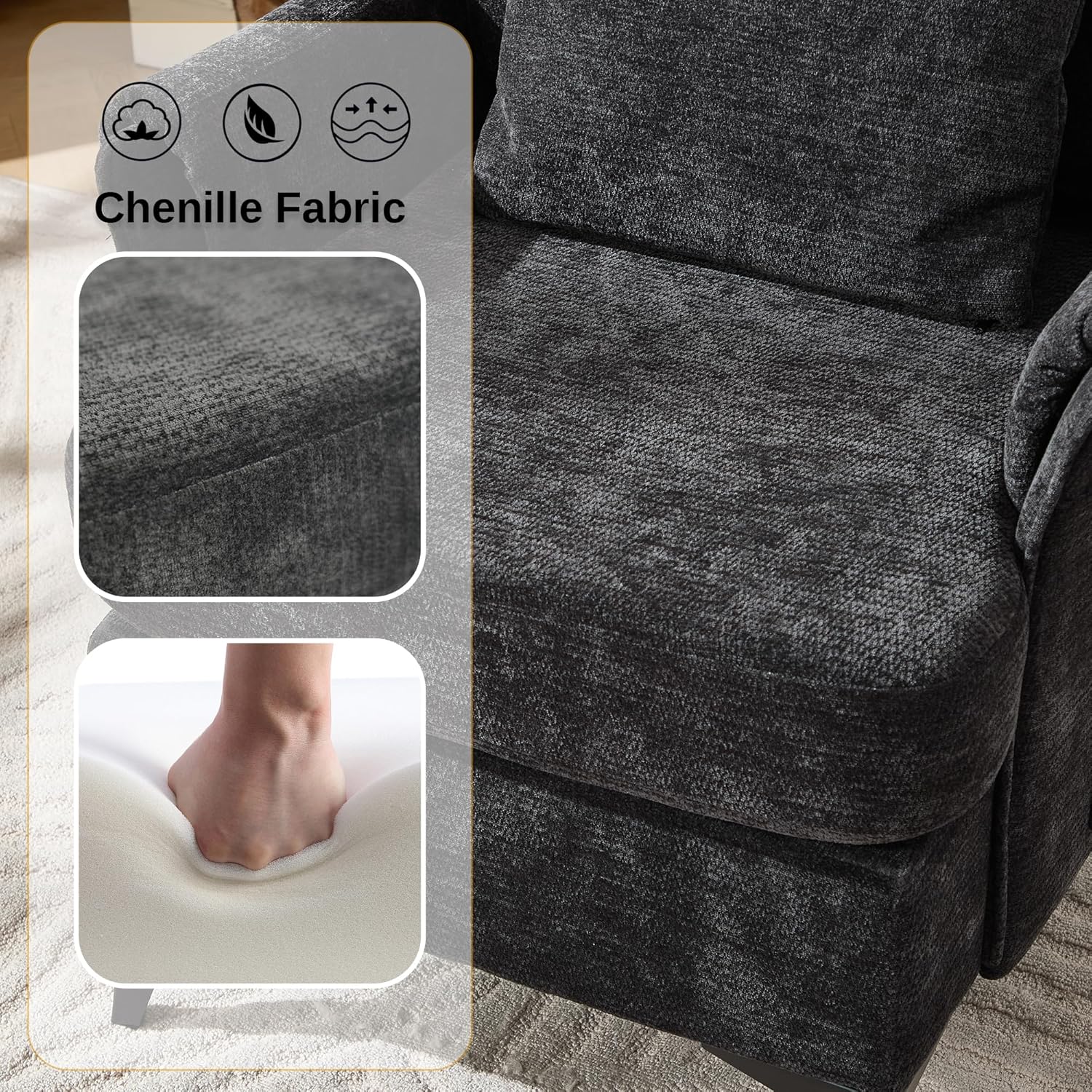 - Comfy Chenille Sofa Cover - You can feel the smooth touch when you sit on the fluffy couch covered by chenille fabric. This sofa will make you feel physical and mental comfort. And you can take a nap on it sometimes