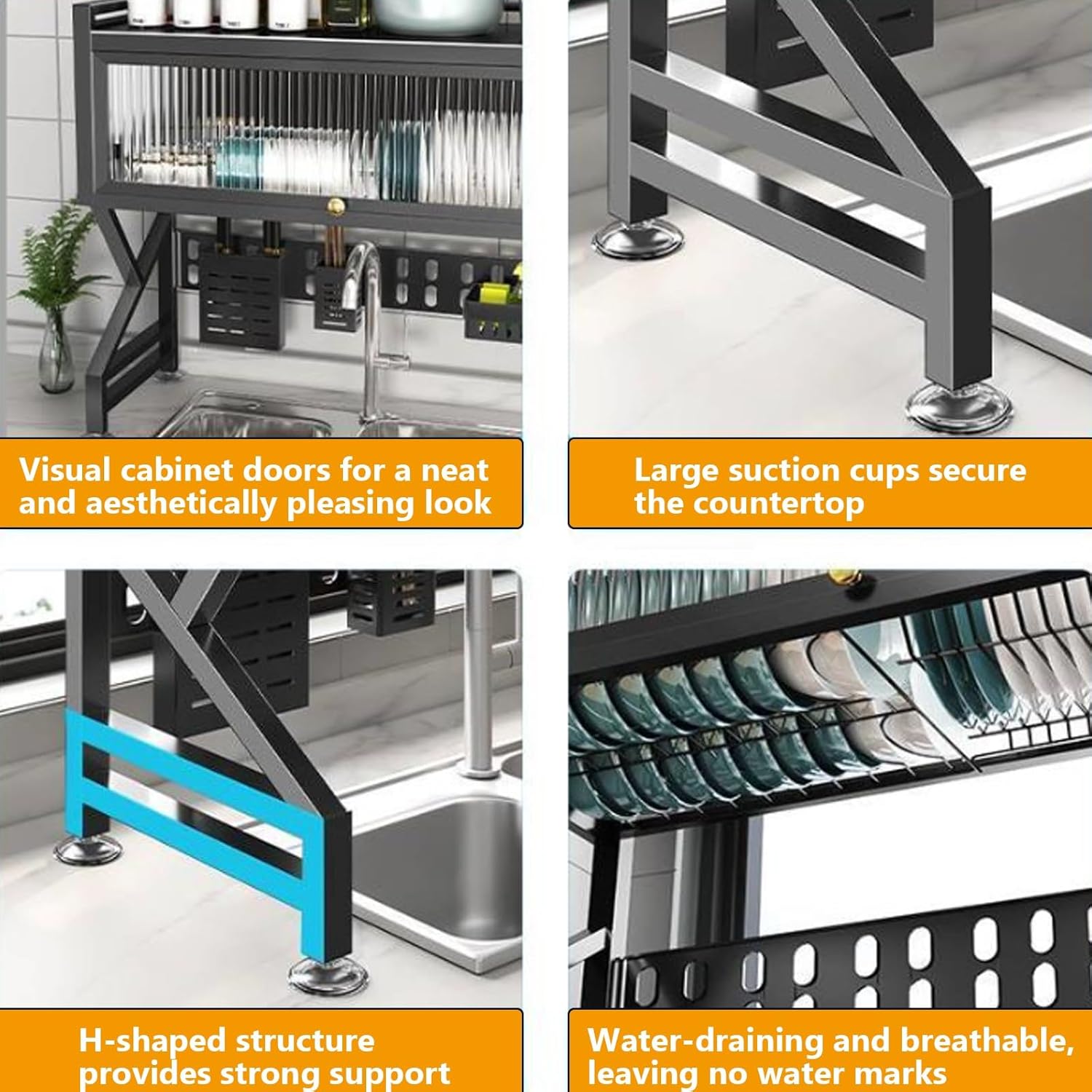 - Premium Materials, Durable & Rust-Resistant:Crafted from high-quality, durable materials, the drying rack kitchen over sink has a stable structure, allowing this over the sink dish drainer drying rack to easily hold heavy dishes. Its rust-resistant coating extends its service life, making it a reliable daily kitchen storage and drying solution.