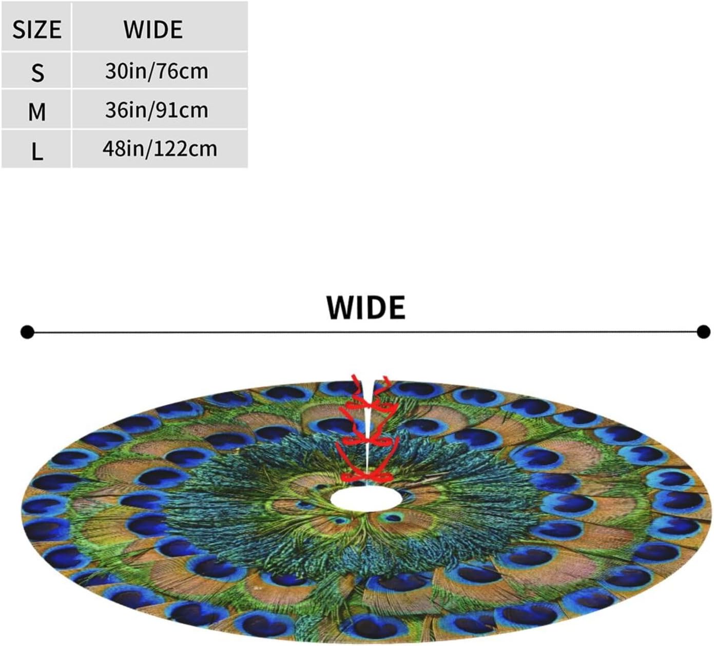 Christmas Tree Skirt,Peacock Feathers Circle Xmas Tree Skirt Rustic Farmhouse Tree Skirt for Christmas Decor Xmas Holiday Home Party Decorations36
