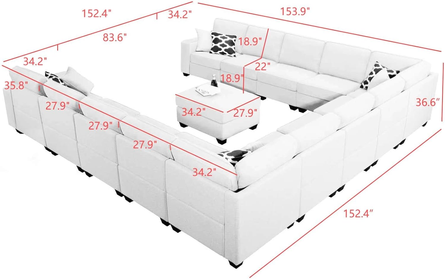 - Product Dimensions : 99.6"D x 127.6"W x 36.6"H