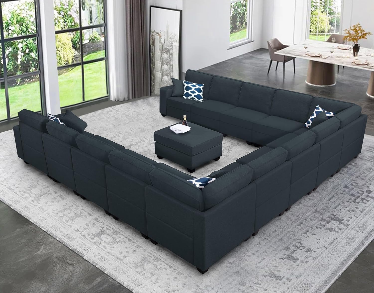 - 【Ergonomic Design】The backrest of the couches for living room perfectly fits the human body curve, the armrests are wide and at the right height, and the living room sofa as a whole is ergonomically designed to give you comfortable support. The modular sectional sofa is paired with multiple multi-functional small pillows, allowing you to relax anytime, anywhere. The oversized couch has a weight capacity of up to 660 pounds to give you stable support.