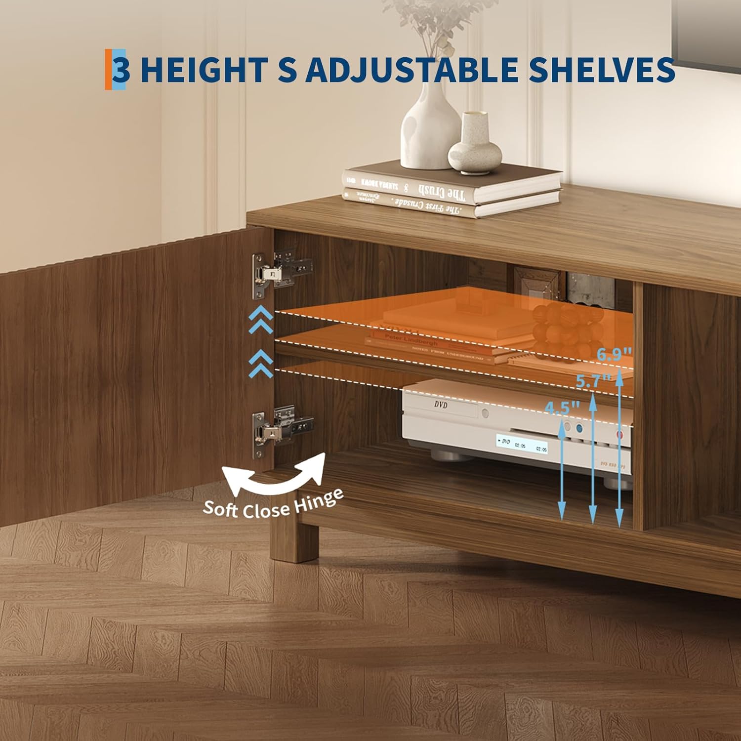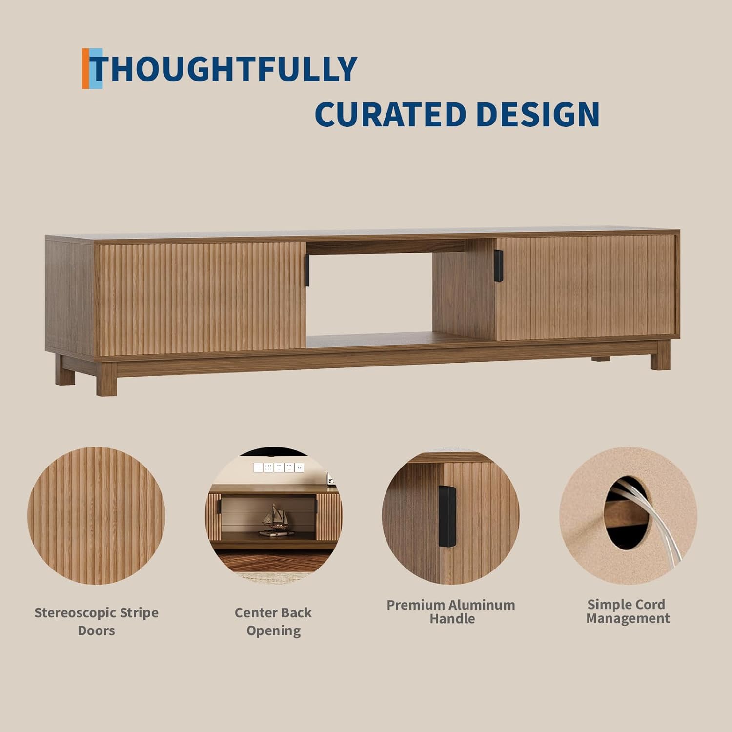 - 【 Exquisite Mid-Century Masterpiece】-Immerse your space in timeless sophistication. Our TV console showcases elegant fluted cabinet doors and gracefully rounded edges, hallmarks of authentic mid-century modern design. Crafted in a rich walnut finish, it transforms into a breathtaking centerpiece that elevates any living room or bedroom decor.