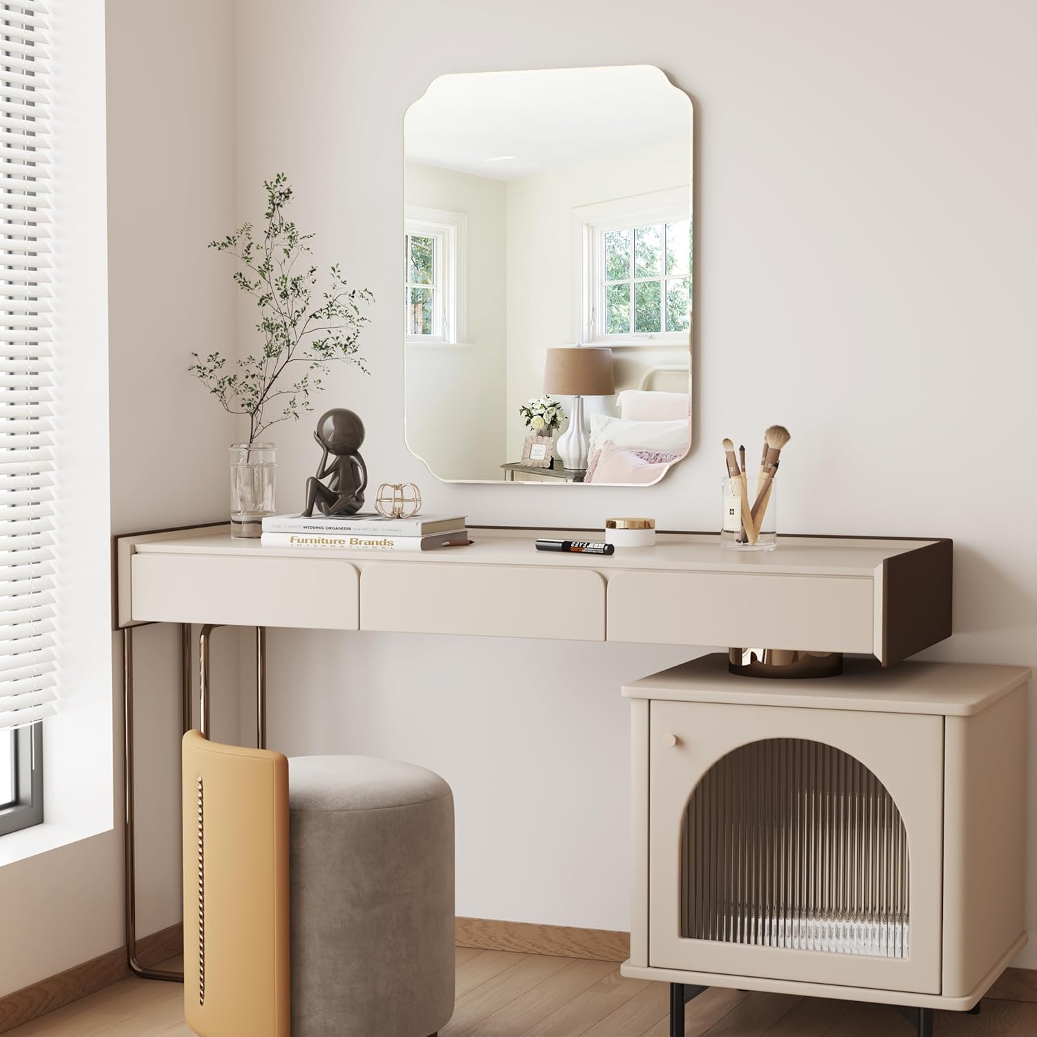 - FLEXIBLE MULTI-SCENE APPLICATION - Designed for hassle-free horizontal or vertical wall mounting, the beveled mirror edge complements diverse spaces—bathrooms, hallways, bedrooms, and living rooms—to create personalized decor effortlessly.