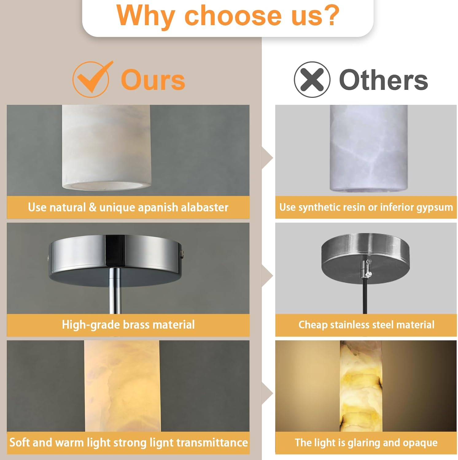- 【Wide Application for Indoor】Alabaster pendant light fixture design is simple and exquisite, can be used as the perfect art for decorating home, suitable for a variety of home decoration styles. Ideal for restaurants, bedrooms, offices, kitchen islands, living rooms, corridors, entryways, foyers, stairs, farmhouses, bars, cafes, hotels, etc.
