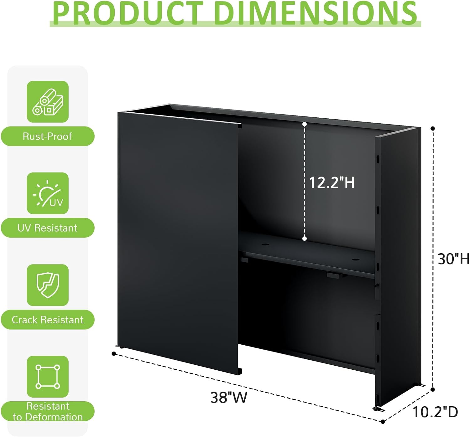 Planter Box Outdoor 38"W x 10.2"D x 30"H- Tall Rectangular Planters for Outdoor Patio/Porch, All-Weather with Anti-dumping Kit, Durable Galvanized Steel, Modern Design for Plants, Flower,Garden