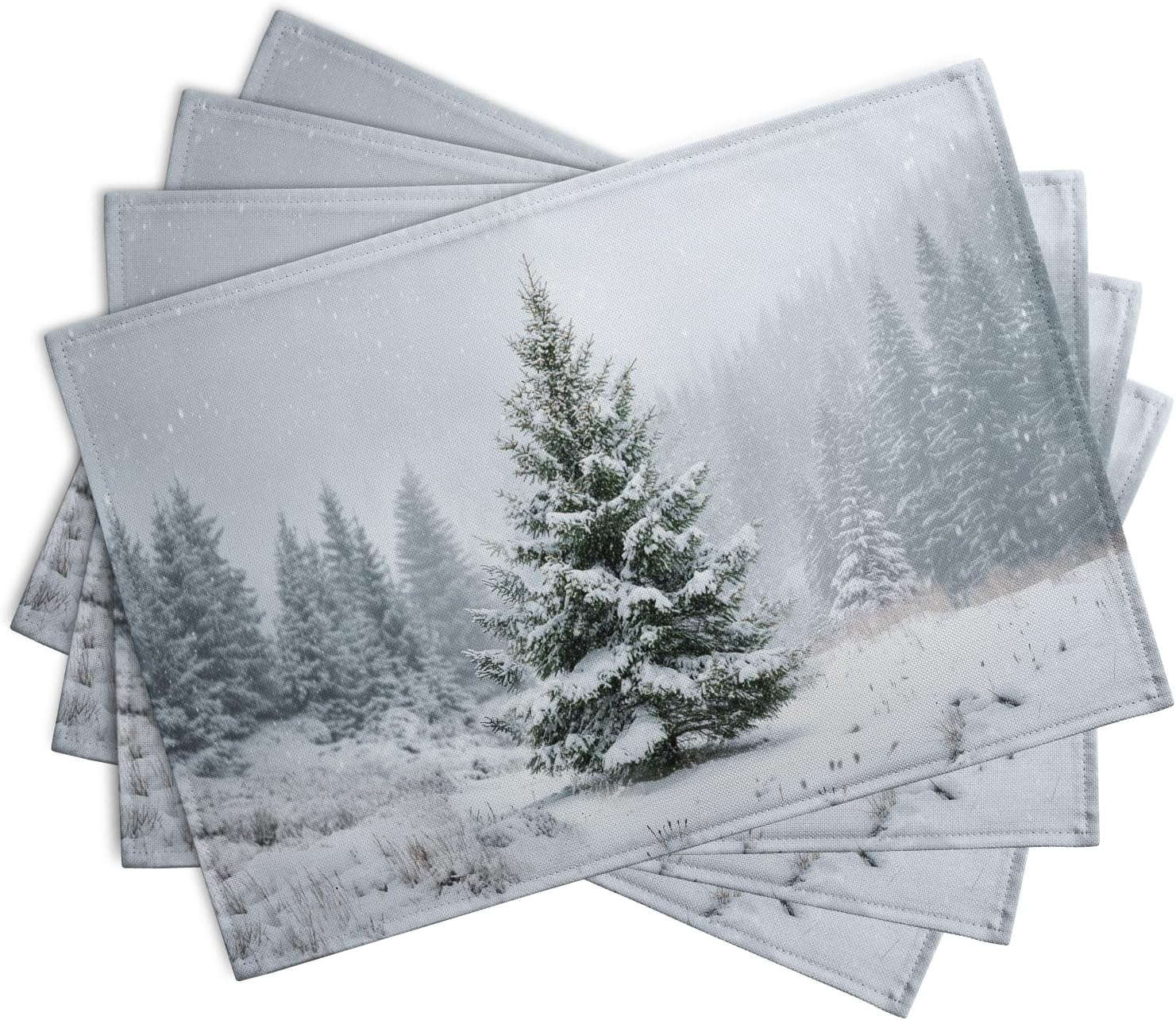 Winter Placemats Set of 4, 12x18 Inch Christmas Pine Tree Snowflake Linen Table Mats Seasonal Washable Farmhouse Place Mats for Kitchen Dining Xmas Holiday Party Decor
