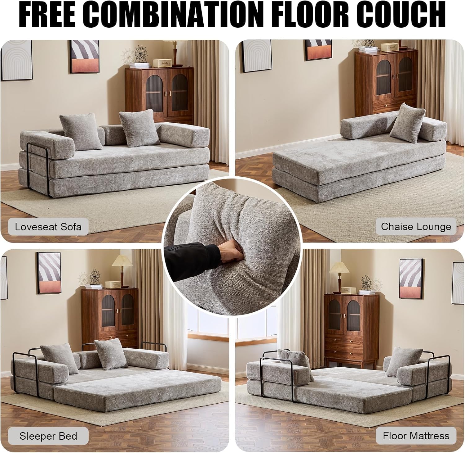 - 【Spacious & Comfortable Dimensions】Chair size: 76.77"L x 37.4"W x 23.62"H. Sofa bed size: 76.77"L x 74.80"W x 15.75"H. This modular floor sleeper sofa is ideal for lounging, napping, reading, or accommodating overnight guests — a space-saving solution for apartments, living rooms, and studios.