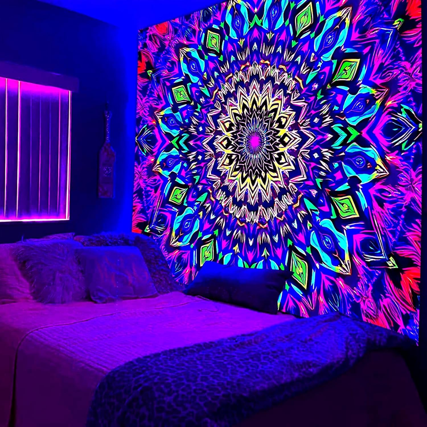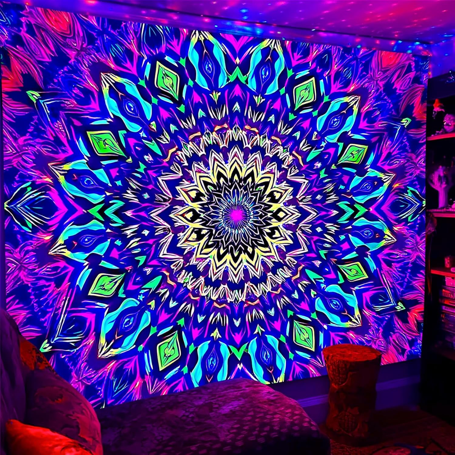 - UV REACTIVE: Utilizing special ink and advanced HD printing technology, our tapestry boasts a powerful blacklight effect and vibrant colors under black light, UV light, and neon.
