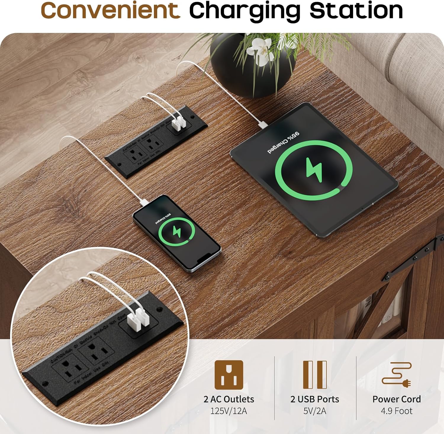 - 【Night Stand with Charger Station】Equipped with 2 AC outlets and 2 USB ports, this white night stand powers up to 4 devices at once, like your phone, laptop, tablet, and lamp—always charged, always ready. The 6.5ft power cord plugs into wall outlets easily, ensuring hassle-free charging.