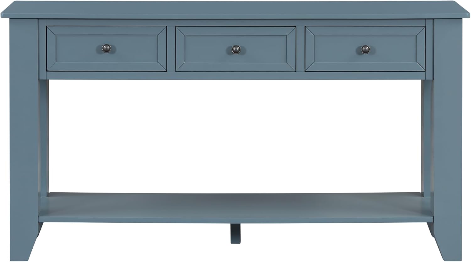 Farmhouse Modern Entryway Console Table 55.4'' Long Entry Sofa Table with Drawers & Storage Shelf for Living Room Hallway, Blue