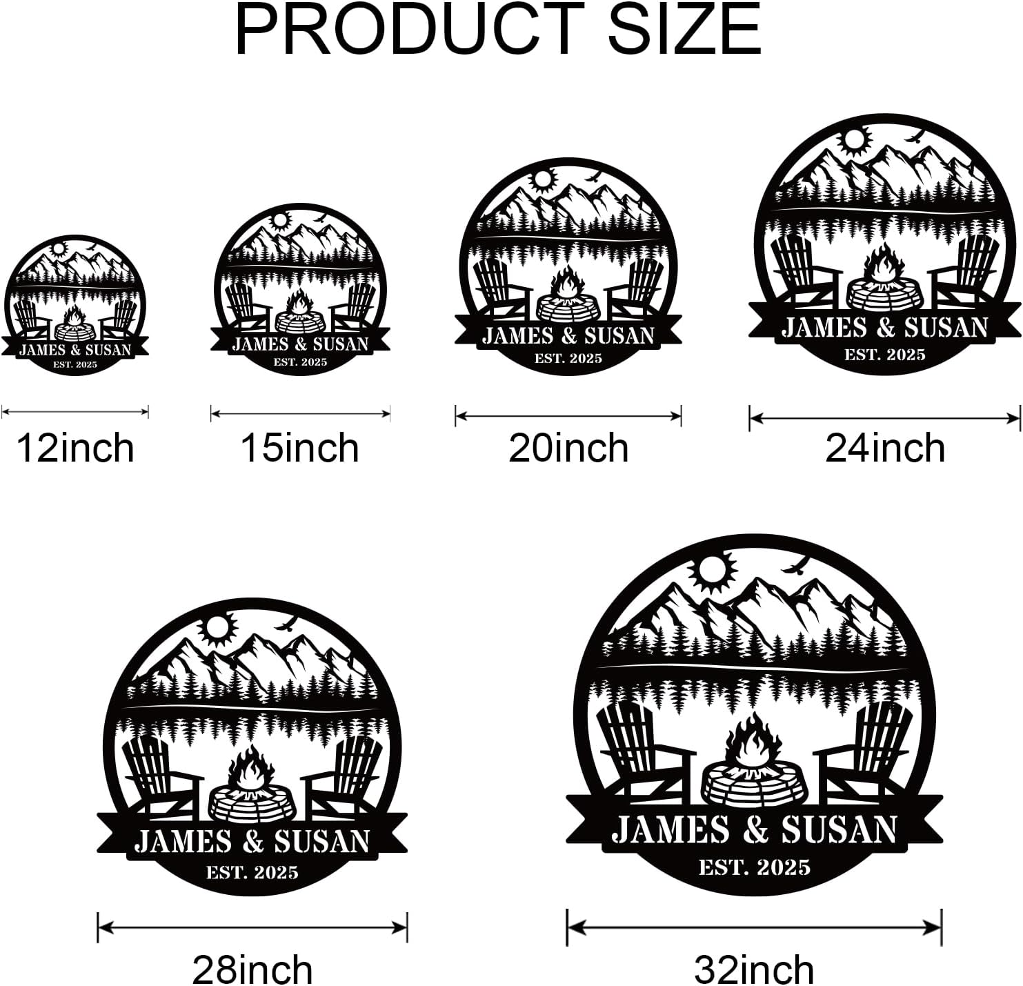 - Custom Outdoor Campfire Metal Sign: Crafted from premium steel with detailed mountain and tree designs, this custom outdoor campfire metal sign adds a unique touch to cabins, patios, and gardens, making it a lasting piece of rustic metal wall decor for any outdoor retreat.