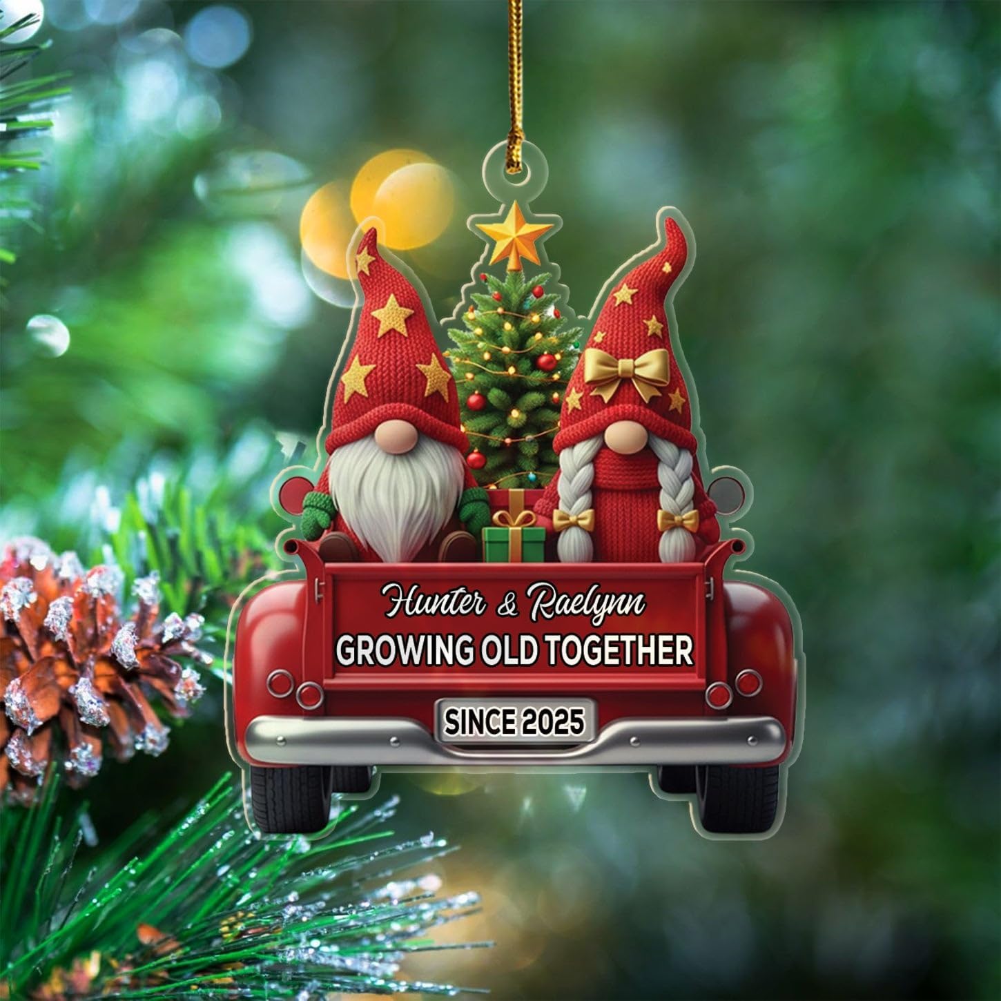 - PERSONALIZED CHRISTMAS ORNAMENTS: This "Growing Old Together Gnome" custom ornament is specially designed for an Old Couple, Husband and Wife, Boyfriend and Girlfriend, Him and Her, Bride and Groom, Mr & Mrs, Newlyweds, Dad Mom, Parents, Grandparents. Click on the " Customize Now " button to make your ornament special by customizing it to your liking.