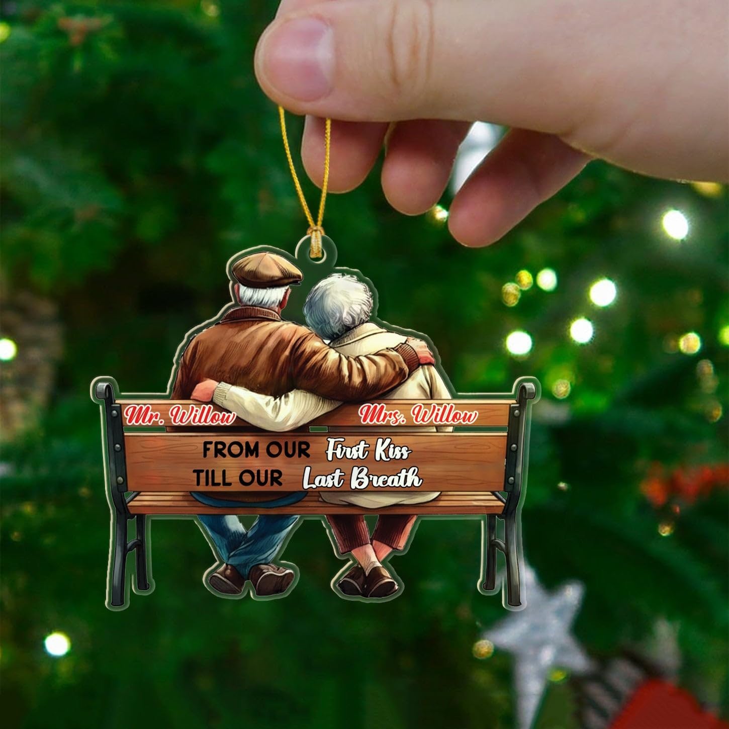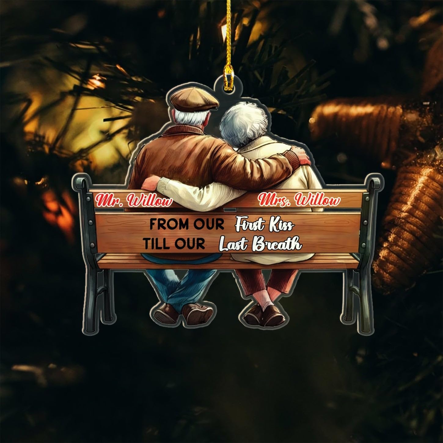 - PERSONALIZED CHRISTMAS ORNAMENTS: This “From Our First Kiss Till Our Last Breath” custom ornament is specially designed for an Old Couple, Husband and Wife, Boyfriend and Girlfriend, Him and Her, Bride and Groom, Mr & Mrs, Newlyweds, Dad Mom, Parents, Grandparents. Click on the " Customize Now " button to make your ornament special by customizing it to your liking.