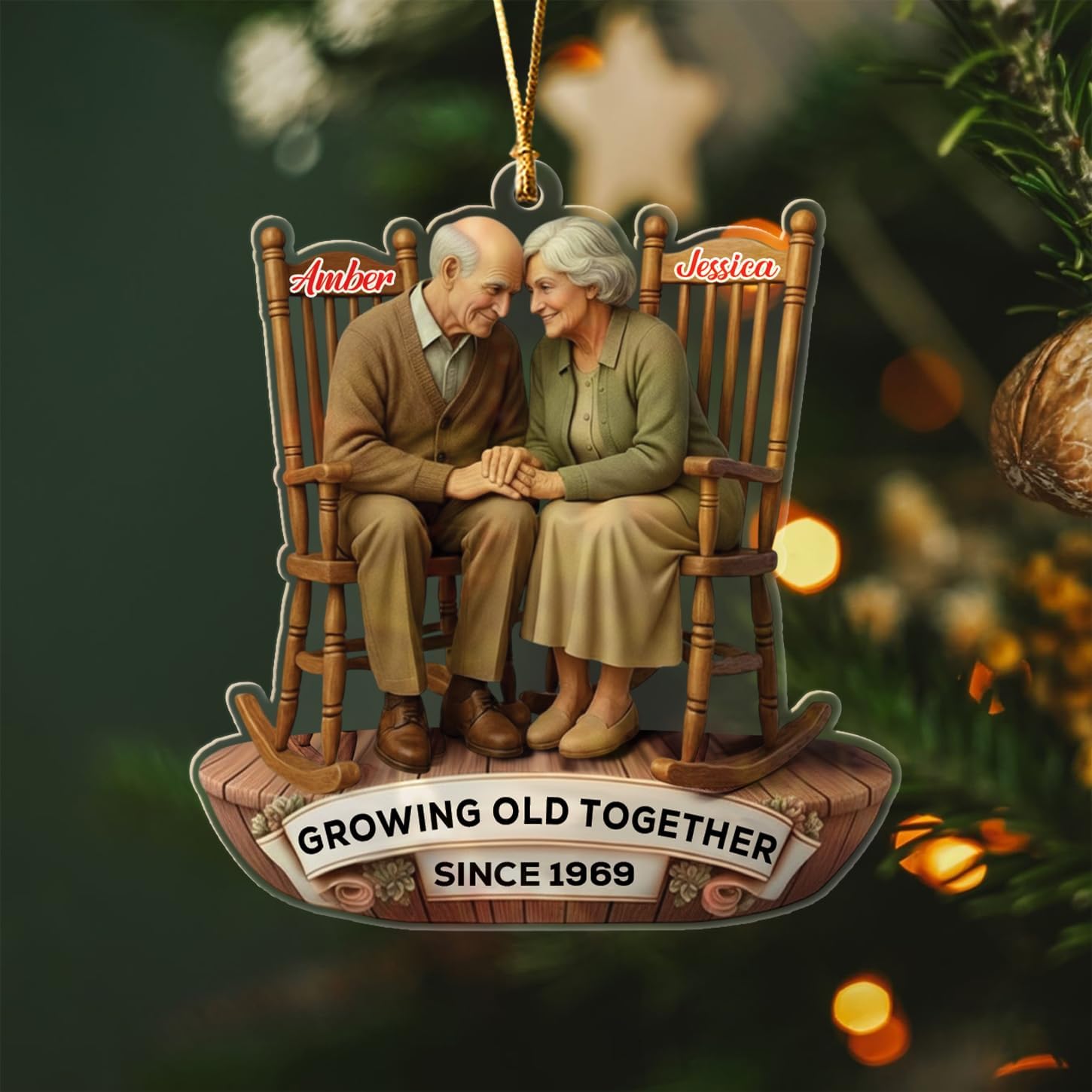 - PERSONALIZED CHRISTMAS ORNAMENTS: This "Old Couple Sitting On Rocking Chairs Growing Old Together Since" custom ornament is specially designed for an Old Couple, Husband and Wife, Boyfriend and Girlfriend, Him and Her, Bride and Groom, Mr & Mrs, Newlyweds, Dad Mom, Parents, Grandparents. Click on the " Customize Now " button to make your ornament special by customizing it to your liking.