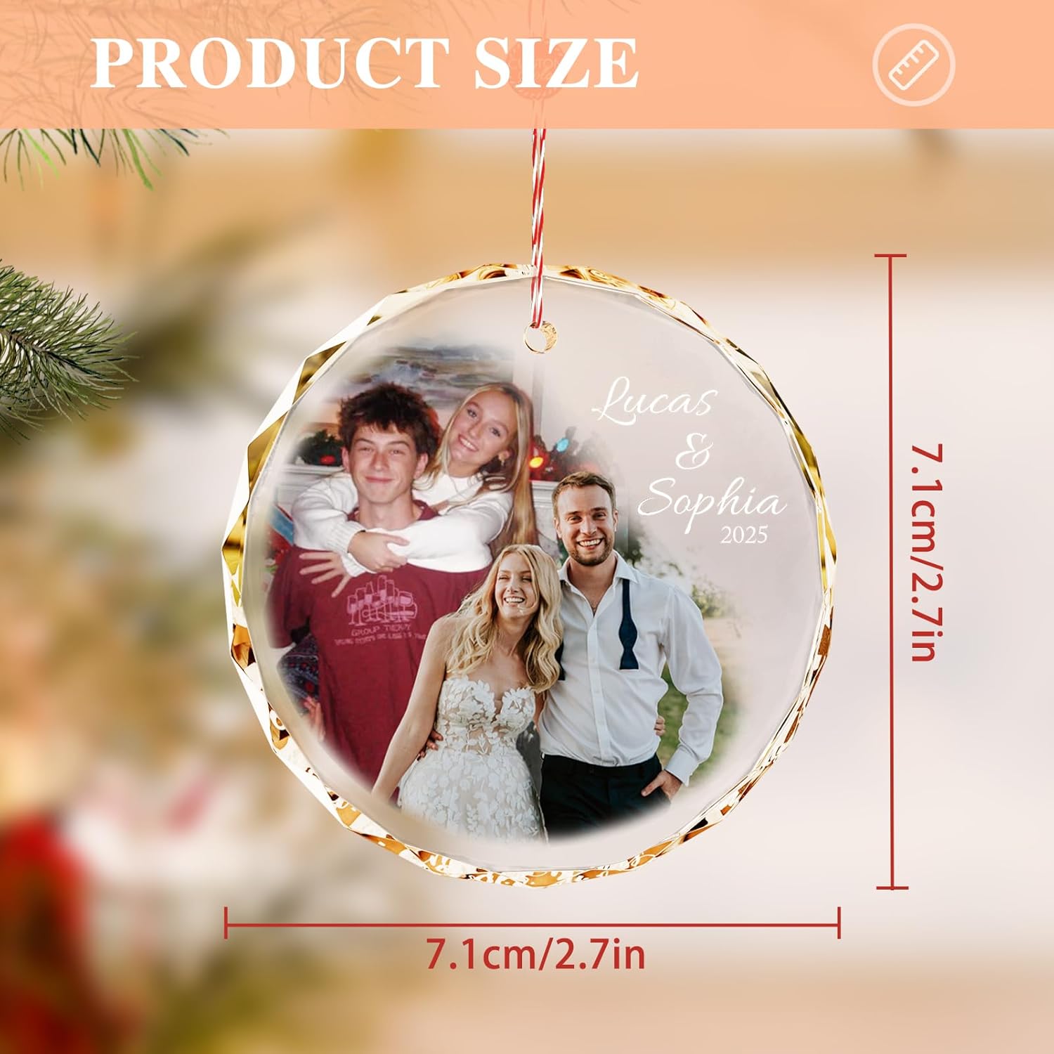 - 💎 Premium Crystal Material 💎 Crafted from ultra-clear, high-quality crystal, this photo ornament for christmas tree sparkles with stunning clarity and brilliance. Each crystal personalized couple ornament is carefully polished and engraved, offering dazzling refraction and depth. The high-definition printing ensures your photos stay sharp, vibrant, detailed, and fade-resistant. Available in three sizes: 3, 4, and 5 inches